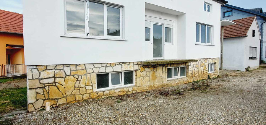 Veći stambeni objekt je u visokoj rohbau izvedbi (glazure, požbukano, pogletano, izvedene sve instalacije, PVC stolarija, novo krovište), a sastoji se od 4 sobe, kuhinje, dnevnog boravka i kupaonice. Objekt je stambene površine 139,00 m2, te ima i podrum ispod cijele nekretnine i tavan. Tavanski dio objekta moguće je izvesti u dodatni stambeni prostor. U ovoj nekretnini je prema projektima predviđeno centralno grijanje na plin koje treba izvesti. Nekretnina je izgrađena 1968. godine.