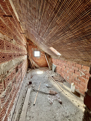 Stambeni dio nekretnine u prizemlju sastoji se od 2 hodnika, dvije sobe i kupaonice, a pristupiti mu se može kroz dva ulaza. Tavanski prostor - stan je u rohbau izvedbi, sastoji se od dvije prostorije i izlaza na balkon.