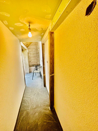 U kuhinji, spavaćoj sobi i hodniku je na svim zidovima izvedena hidroizolacija, te je postavljen knauf na profilima na zidovima, te na stropovima,